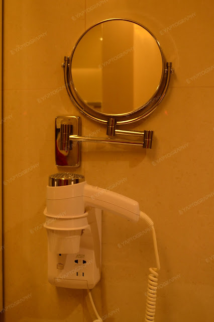 Inside the closet you have your wooden hangers, bedroom slippers, a laundry bag, safety box and torch light for emergency. Hubby actually used the iron and ironing board in the morning to iron his shorts because he just packed it straight from the sampayan. Hahaha. I did not see any bathrobes though.